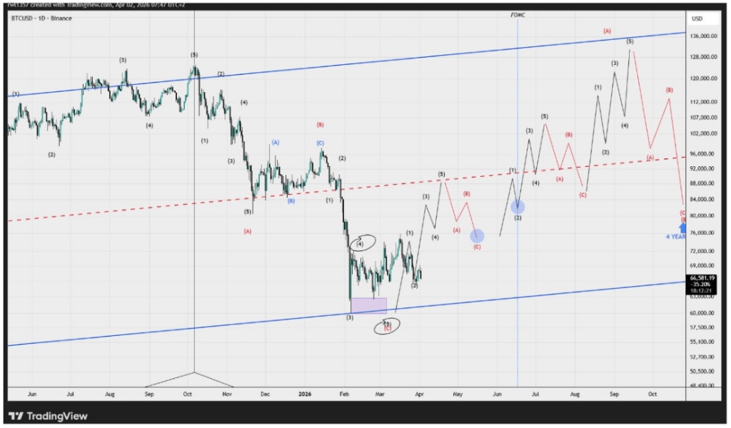 He said that although the market’s timeline has been the only surprise, the cryptocurrency’s structure is what truly matters. Rawl stated that, following Bitcoin’s price crash to $60,000 in February, which marked its lowest level since its 2025 all-time high, the cryptocurrency needed two more waves to complete its corrective structure.