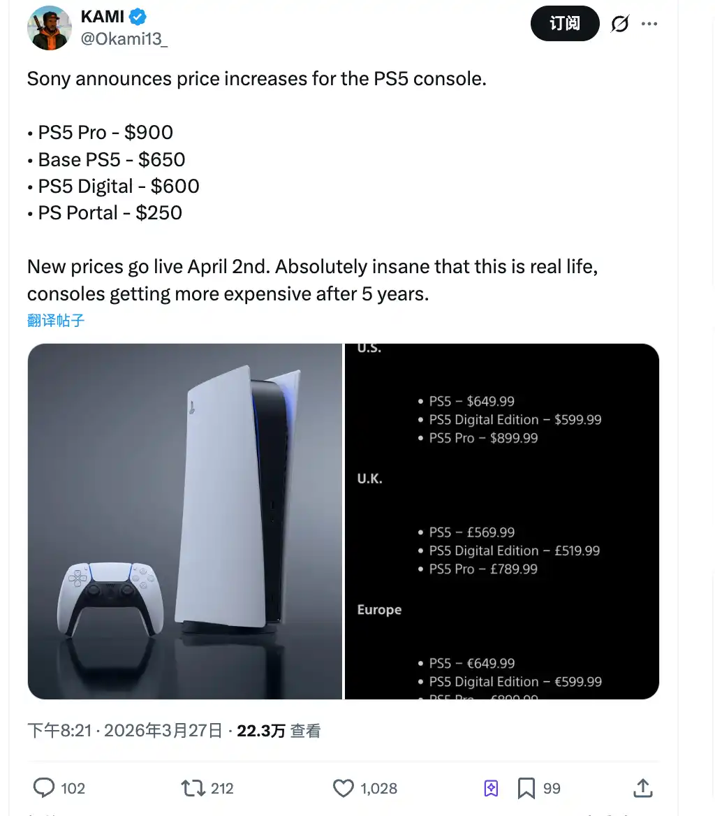In the US market, the PS5 Disc Edition rose from $549 to $649, the Digital Edition from $499 to $599, and the PS5 Pro jumped directly from $749 to $899.