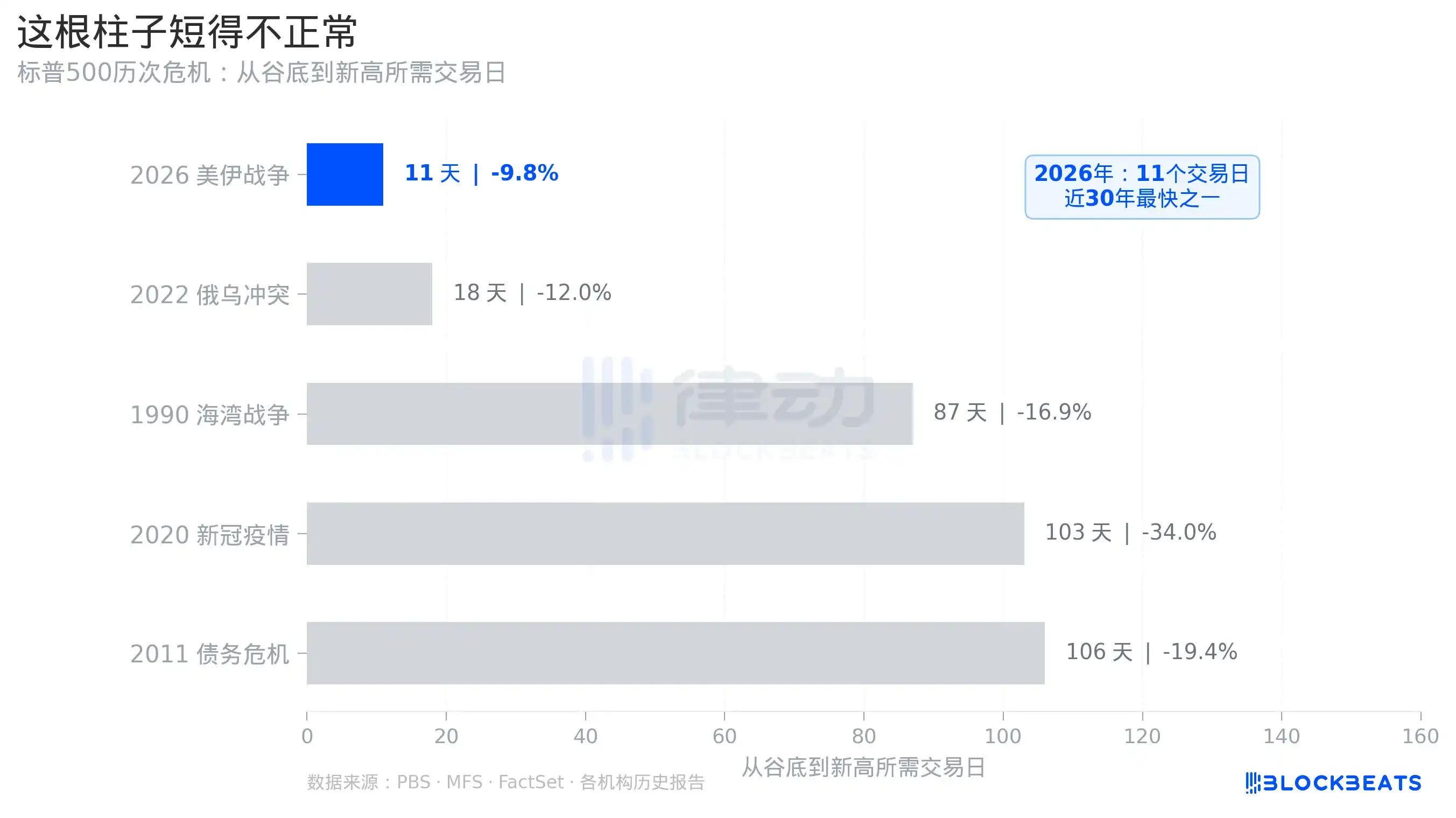 It should be noted that the magnitude of this correction (about 10%) was much smaller than during the COVID-19 period (about 34%) and 2011 (about 19%). But even compared to the 2022 Russia-Ukraine conflict, which had a similar decline, that recovery took about 18 trading days. Eleven days is still an outlier.