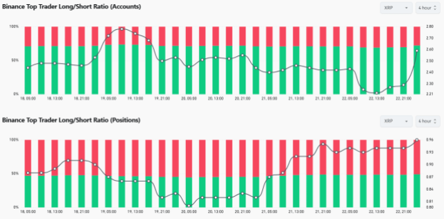 Using data from Binance, the cryptocurrency exchange leader, CW has disclosed a rapid increase in XRP positions from top traders. When investors start to open longs again, it may suggest that they are positioning ahead of a potential bounce.