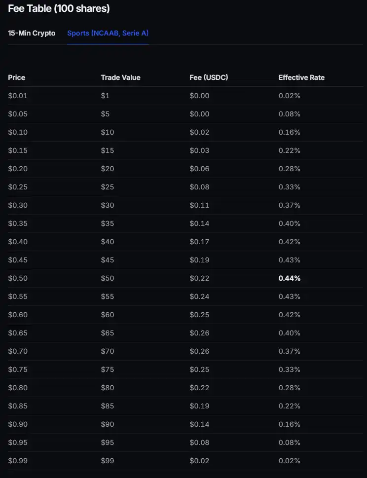 The fee introduced by Polymarket for the sports market is a carefully designed dynamic fee model.