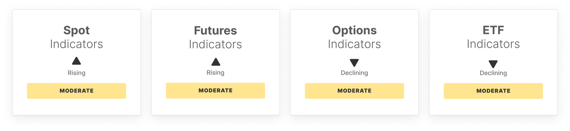 The market, however, also shows signs of consolidation as indicated by a 13.8% decrease in spot volume and a slight reduction in daily active address count. This could be a reflection of waning investor interest or a response to the strengthening price trend.