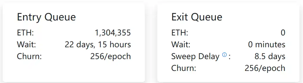 与此同时,进入质押队列的规模却出现显著上升,当前排队规模已增至约 130.44 万枚 ETH,等待时间约 22 天 15 小时,这一状态几乎与去年 9 月中旬形成了完全的反转。