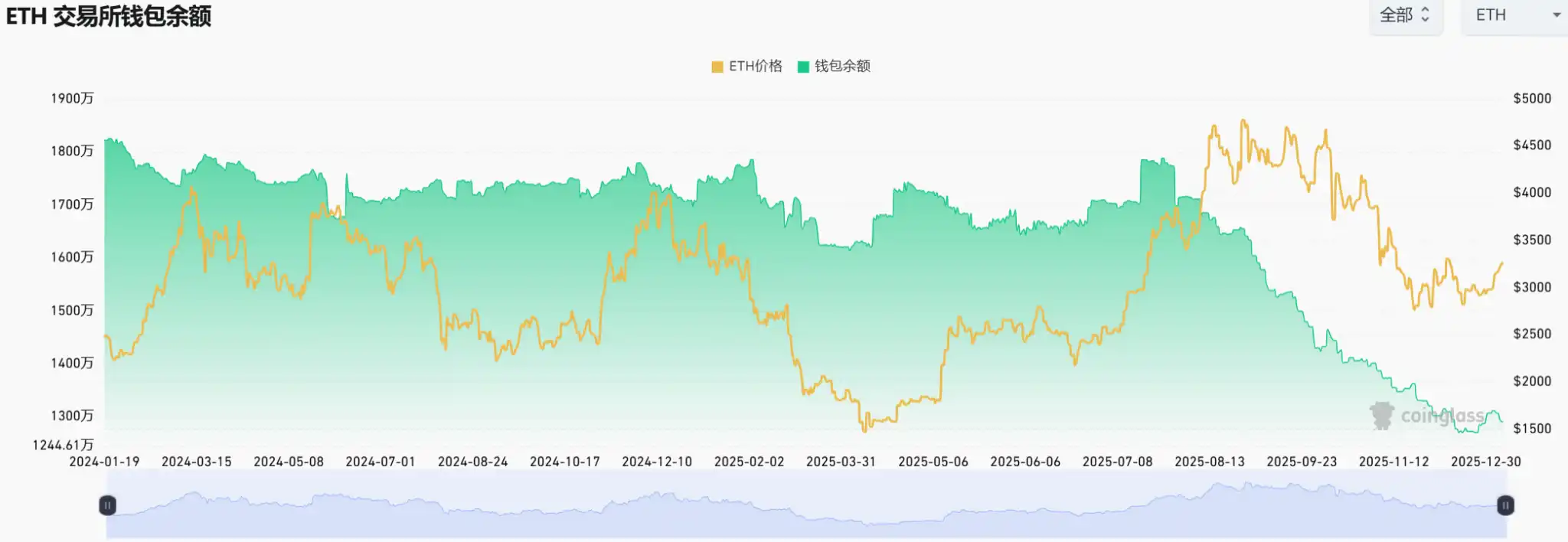 从交易所余额这一指标来看,以太坊的潜在抛压同样处于低位。12 月中旬,以太坊交易所供应量降至 1270 万枚,为 2016 年以来最低水平。尤其是自 2025 年 8 月以来,该指标出现了超过 25% 的显著下滑。尽管近期交易所余额略有回升,但增量仅约 20 万枚,整体仍处于历史低位区间,显示出交易员的抛售意愿并不强。