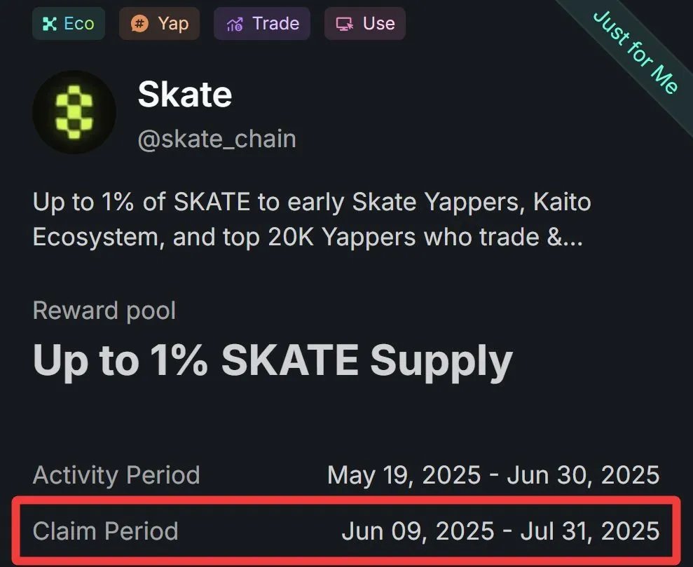 $SKATE TGE 在即。目前已明确的重要信息: