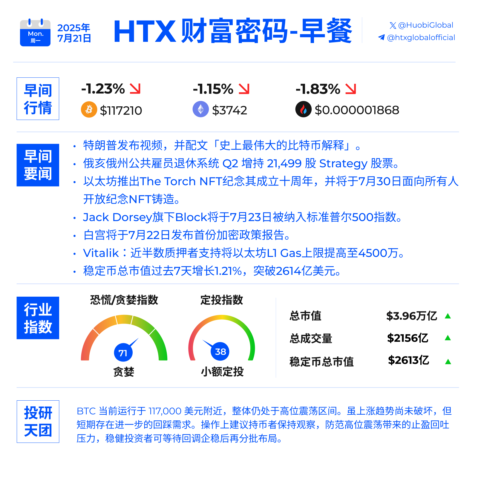 今日市场动态亮点:特朗普发布BTC解释视频;俄亥俄州退休系统增持Strategy股票;白宫将发布首份加密政策报告。