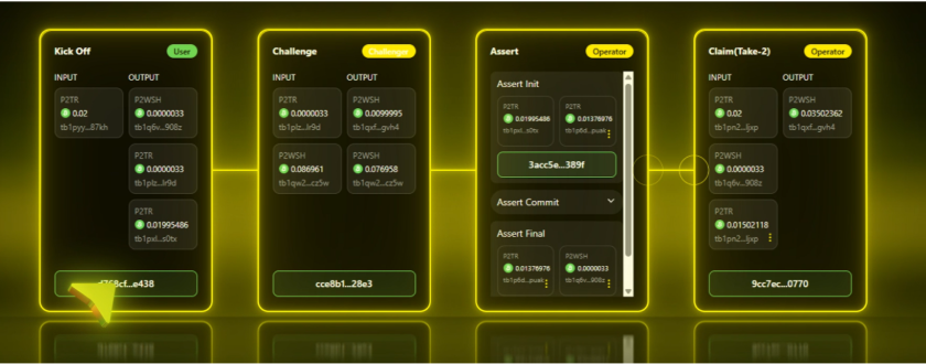 三个环节并行处理,意味着从用户发起交易到验证完成的整个过程,完全没有延迟。更令人兴奋的是,用户可以在 UI 页面实时看到每一步验证的进度,这种透明度在 BTCFi 领域中前所未有。