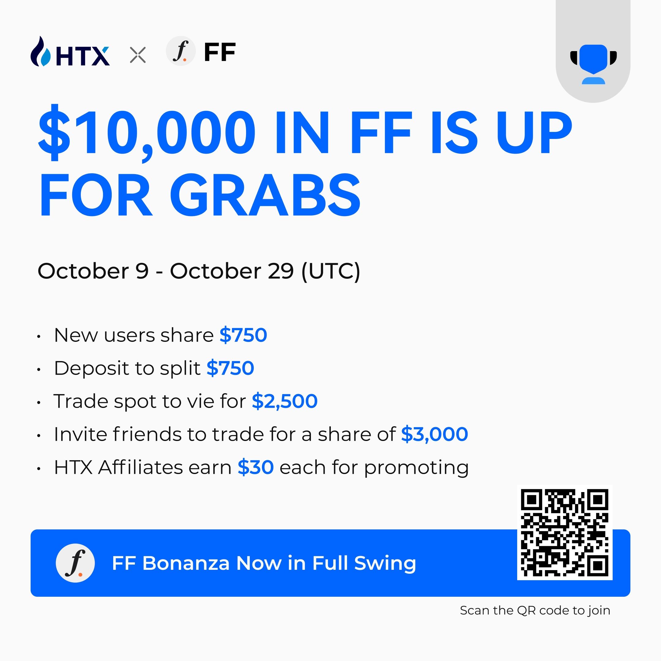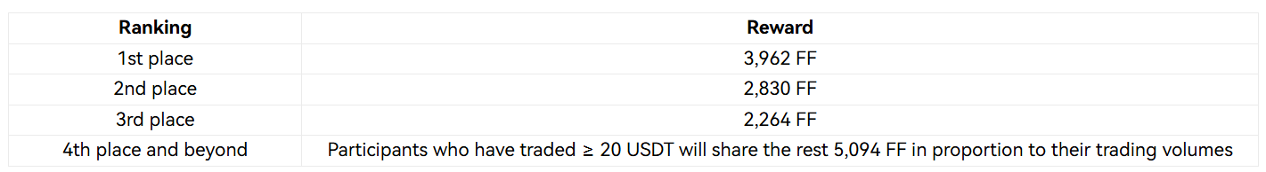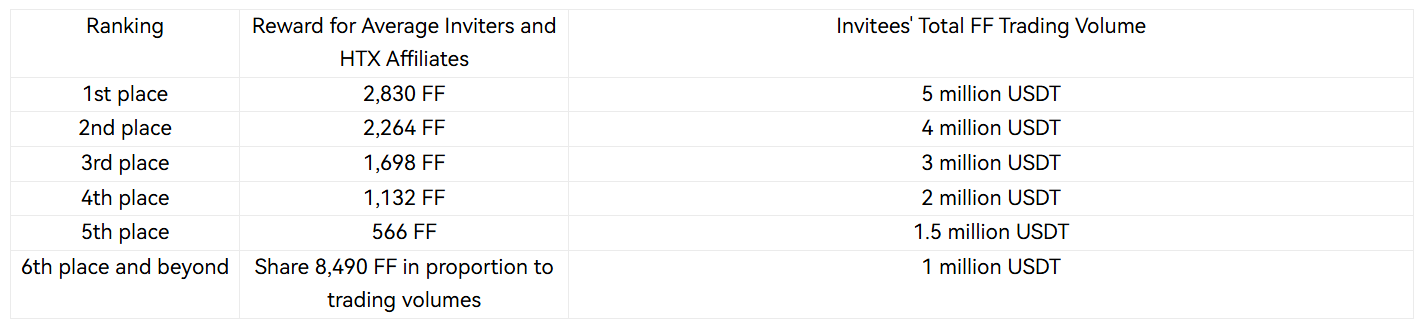 Promotion Rewards: The platform is offering exclusive rewards for HTX Affiliates who promote FF during this event. Eligible participants will share $3,000 in FF.