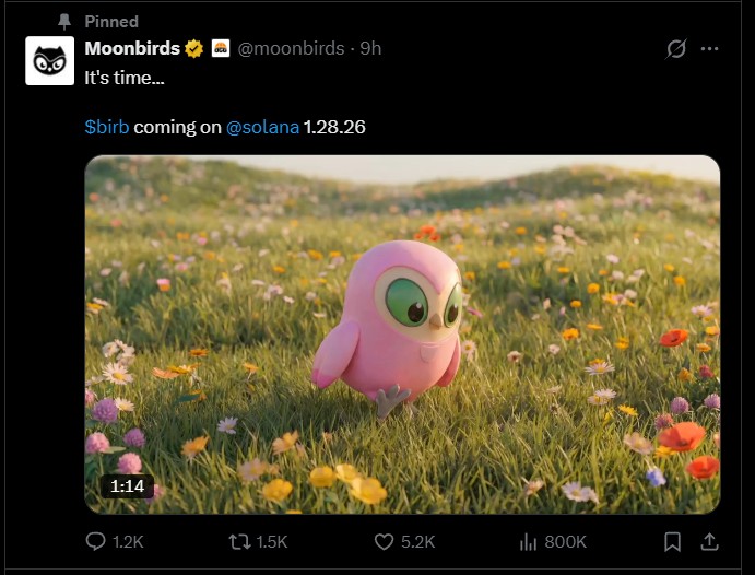 由 PROOF Collective 于 2022 年发布的以太坊 NFT 系列取得了巨大成功,如今正处于新的发展阶段,并已确认将扩展至 Solana 平台。备受期待的实用型代币(Utility Token)将于 2026 年 1 月 28 日通过代币生成活动(Token Generation Event,简称 TGE)正式推出,此前将举办为期 24 小时的社区活动 Birbathon。