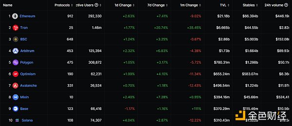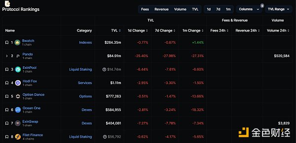 据 Defillama 数据显示, Mixin 的 TVL 为 3.94 亿美元,在所有公链中排名第8,超过 Baase 和 Solana 。而且, Defillama 仅仅统计了 10 个协议的 TVL 。
