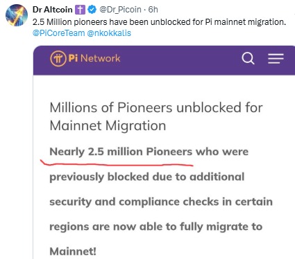 除了解锁主网之外,Pi Network 还宣布将很快允许超过 70 万名用户提交 KYC 申请。此举有望进一步加强主网的完整性。