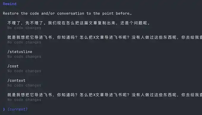 Vous pouvez utiliser cette fonctionnalité pour revenir à n'importe quel point de contrôle, évitant ainsi que Claude code ne mette le code en désordre.