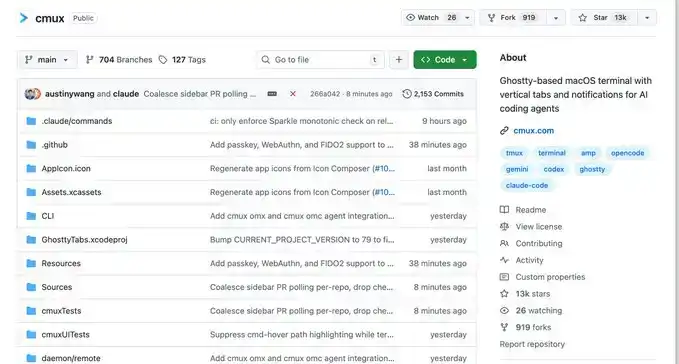 Il s'agit d'un terminal natif macOS entièrement repensé basé sur Ghostty, conçu spécifiquement pour exécuter simultanément plusieurs agents de codage : onglets verticaux + barre latérale intelligente, division d'écran flexible, notification intelligente en surbrillance, division d'écran intégrée au navigateur + API Socket.