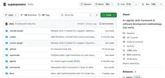 Il a empaqueté les meilleures pratiques du génie logiciel de pointe en Skills à un clic. De la clarification des besoins, la confirmation du Spec, la planification détaillée, au TDD (Test Driven Development) + Revue de Code automatique, tout le flux de travail est structuré de force, permettant à l'IA de produire un code de haute qualité et maintenable comme une équipe d'ingénieurs mature, augmentant considérablement le taux de réussite du premier coup, sans avoir à éteindre constamment des incendies.