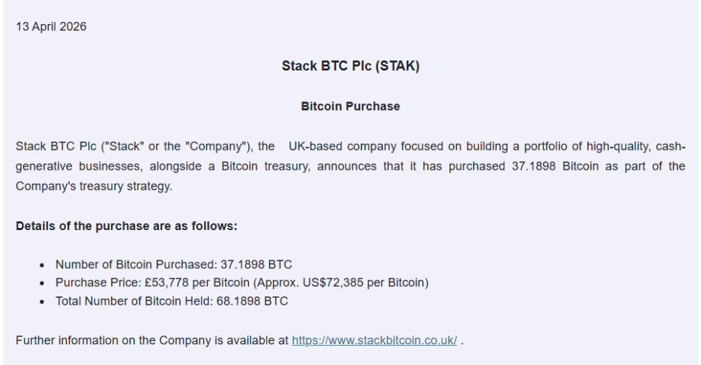 — Stack BTC (@stackbtc_) 13 avril 2026