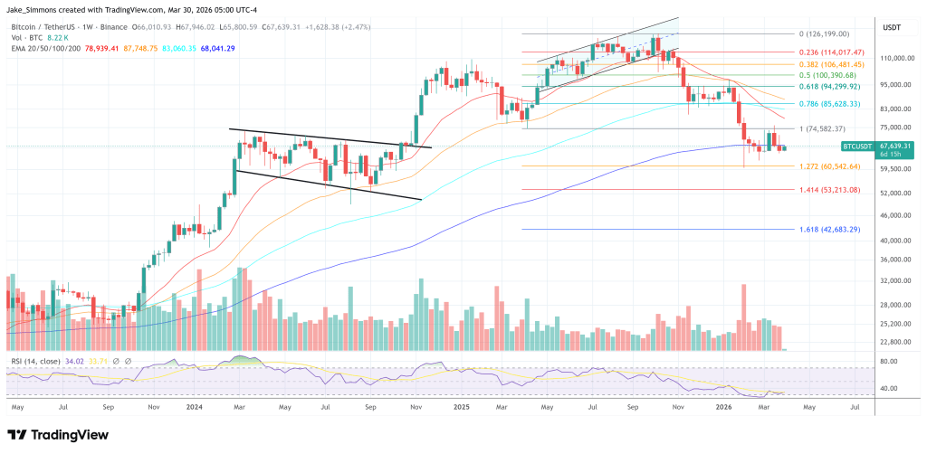 Au moment de la rédaction, le BTC se négociait à 67 639 $.