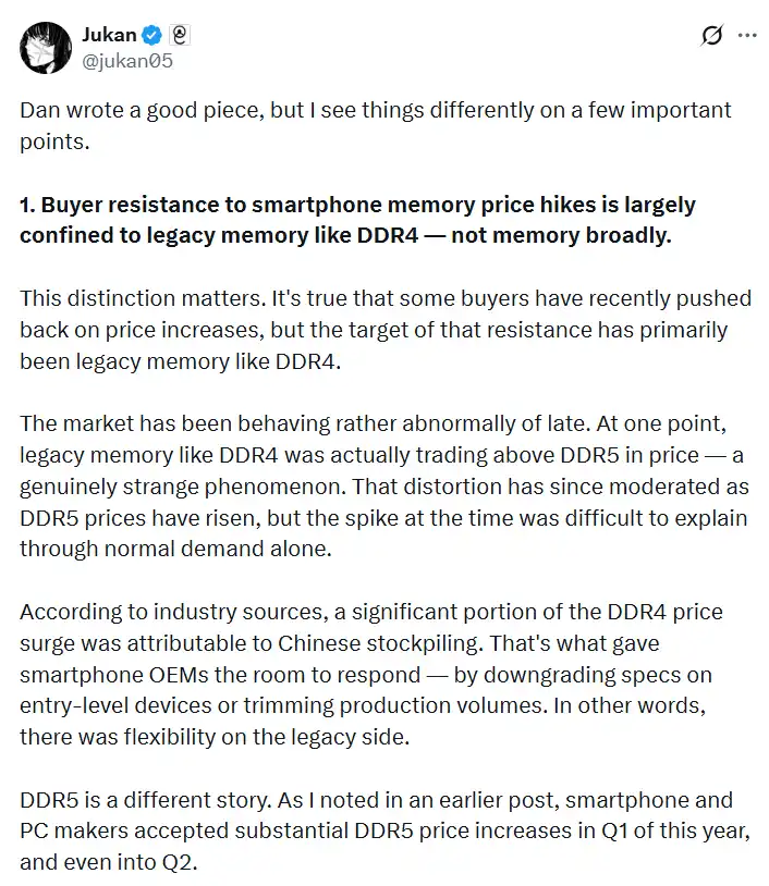 Cependant, l'analyste indépendant Jukan a exprimé un point de vue différent sur l'analyse de Dan Nystedt.