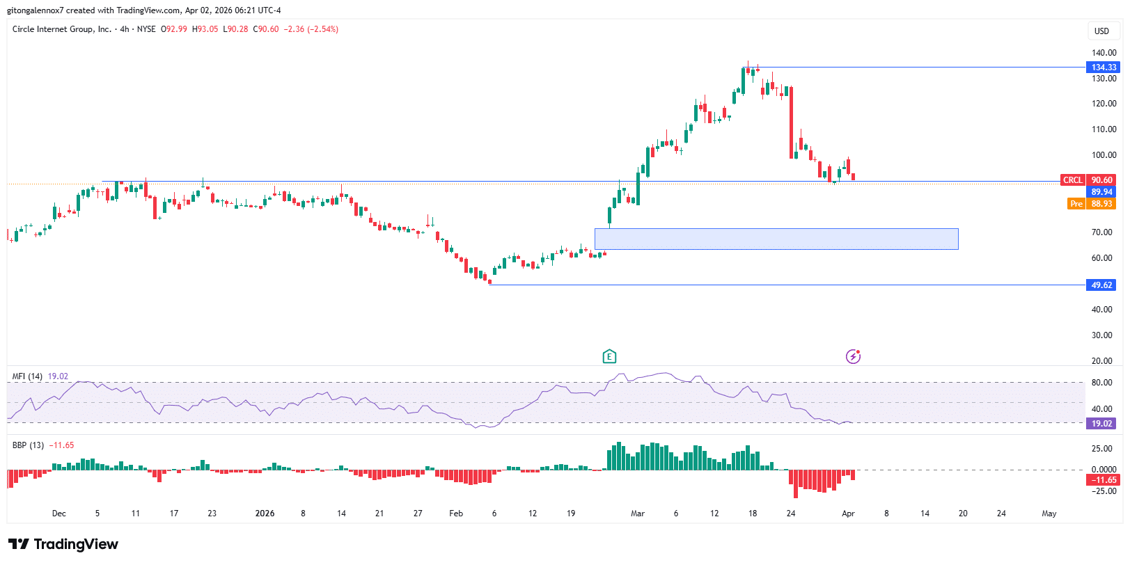 De plus, le CRCL voyait les capitaux partir alors que l'Indice de Flux Monétaire (MFI) tombait à 19. Cela indiquait que l'action était survendue, avec le Power Bull Bear (BBP) montrant la domination des vendeurs.