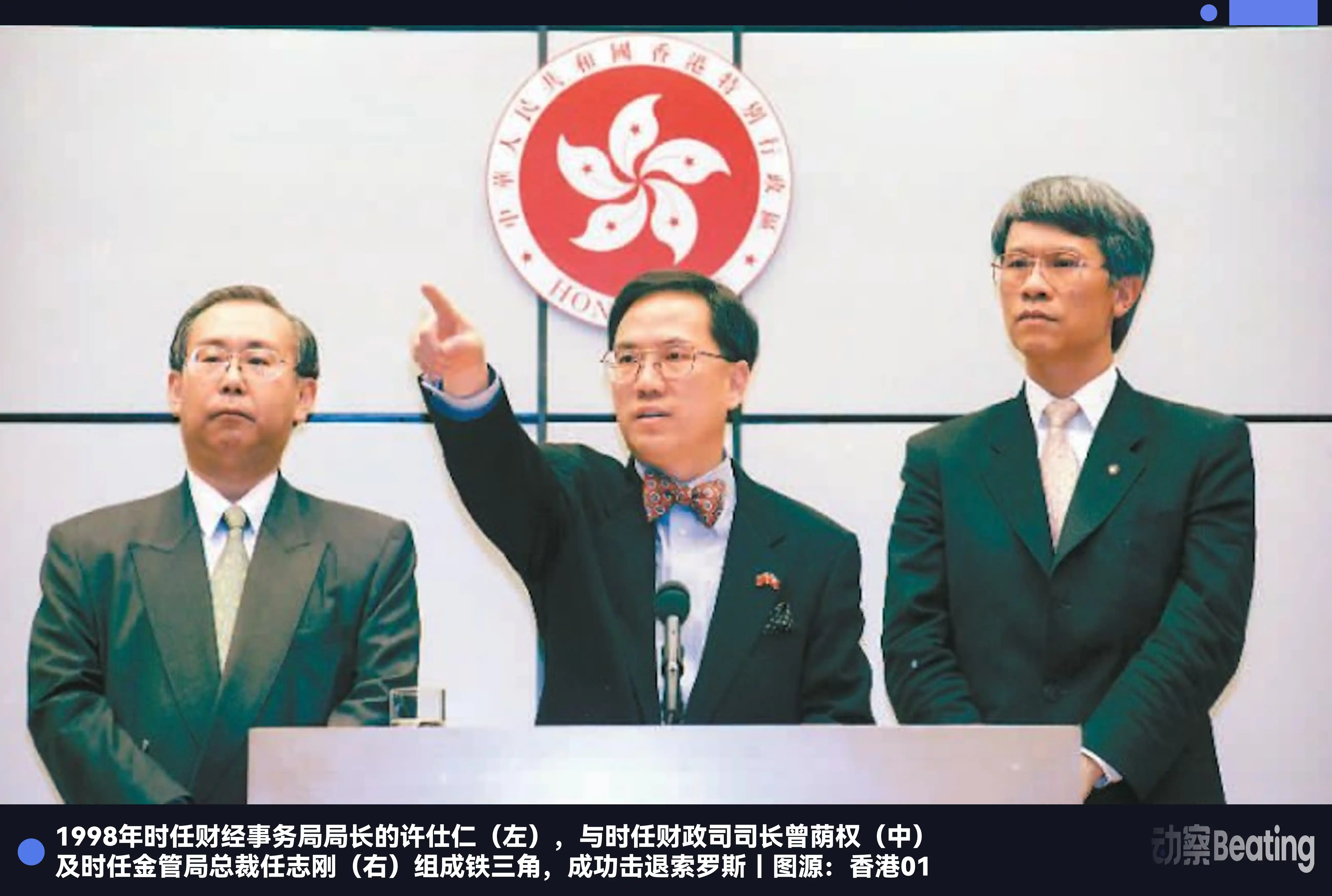 En 1997, alors que Hong Kong venait tout juste de revenir à la Chine, les spéculateurs internationaux, menés par le fonds Quantum de George Soros, ont jeté leur dévolu sur ce morceau de choix. D'une main, ils vendaient à découvert le dollar de Hong Kong (HKD), de l'autre, ils vendaient à découvert les actions de Hong Kong, cherchant à anéantir directement le régime de change de Hong Kong. Une bataille acharnée, connue sous le nom de « bataille pour la défense financière de Hong Kong », a commencé.