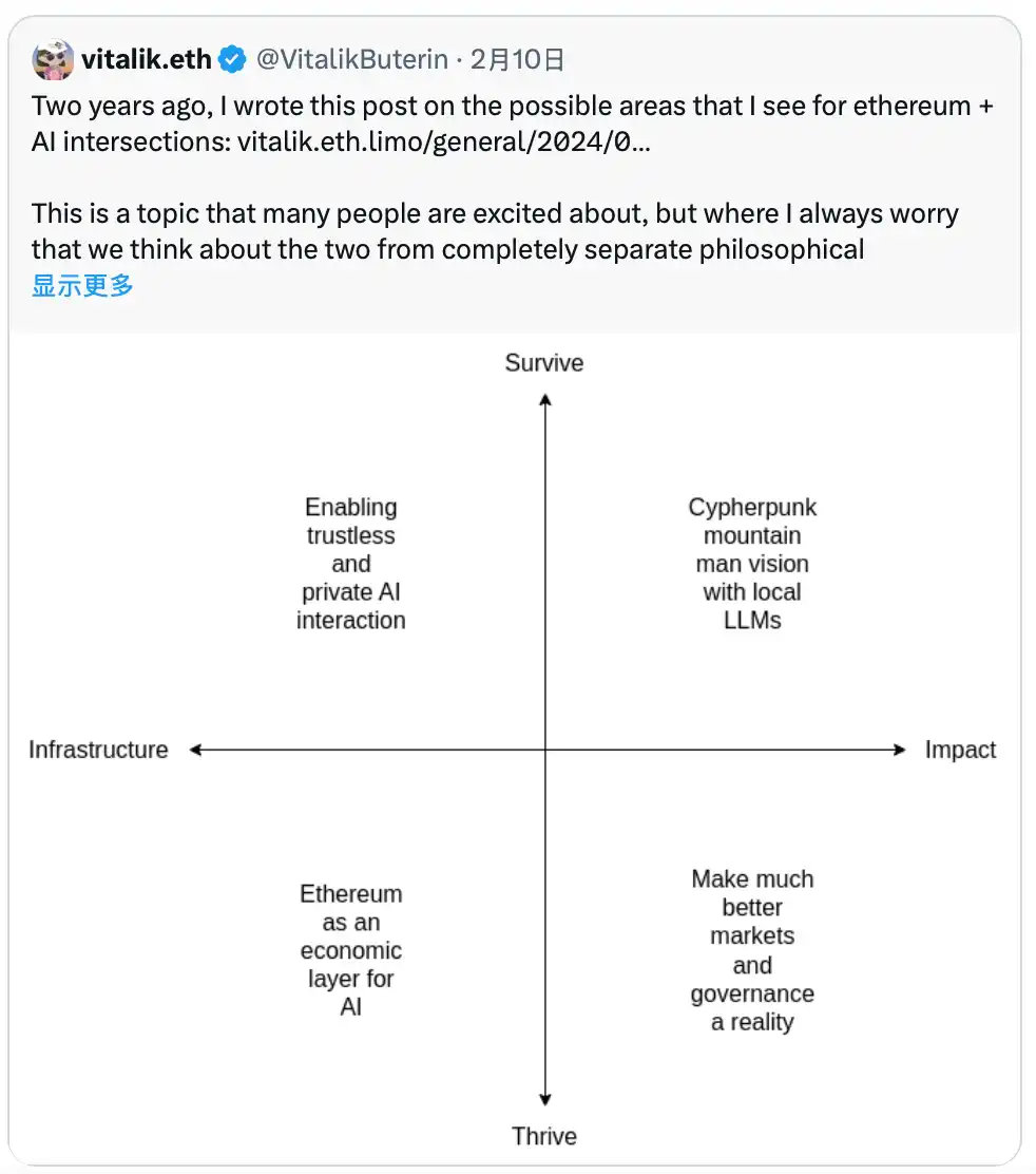 Avant, nous voulions疯狂ement que Crypto Help l'IA, V神 était de l'autre côté. Maintenant, nous nous rencontrons enfin au milieu,只是 cela n'a目测 rien à voir avec les XX tokenisés ou quelconque AI Layer1. J'espère qu'en regardant ce post d'aujourd'hui dans deux ans, il y aura de nouvelles directions et surprises.