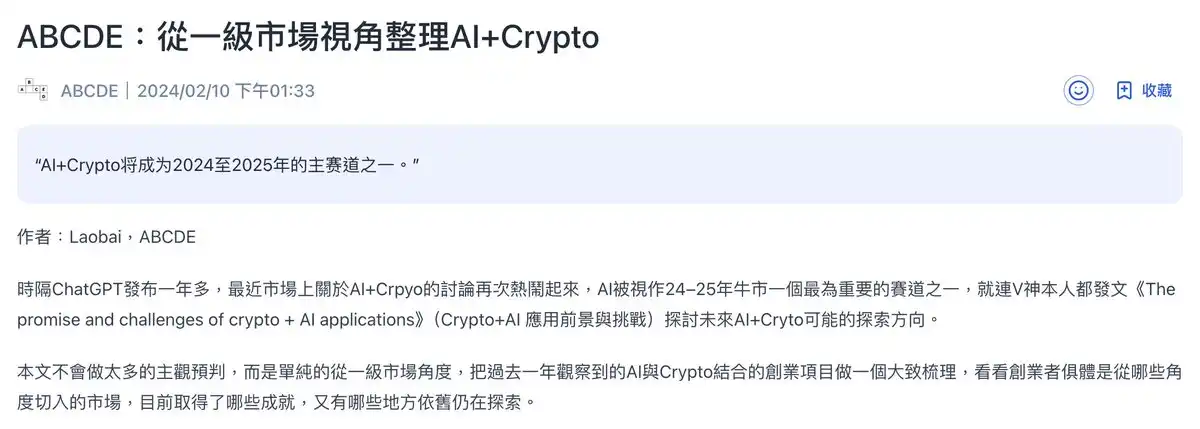 Après deux ans, V a de nouveau posté sur Twi, et je profite de ce rapport de recherche d'il y a deux ans pour en parler, même la date est exactement la même, le 10 février. (Lecture connexe : ABCDE : Organisation de l'IA + Crypto depuis la perspective du marché primaire)