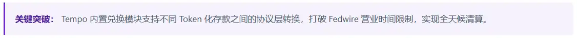 Mais la blockchain peut naturellement fonctionner 24 heures sur 24, 7 jours sur 7, toute l'année, et le module d'échange intégré de Tempo peut également supporter la conversion au niveau protocolaire entre différents dépôts tokenisés, rendant ainsi possible une compensation permanente.