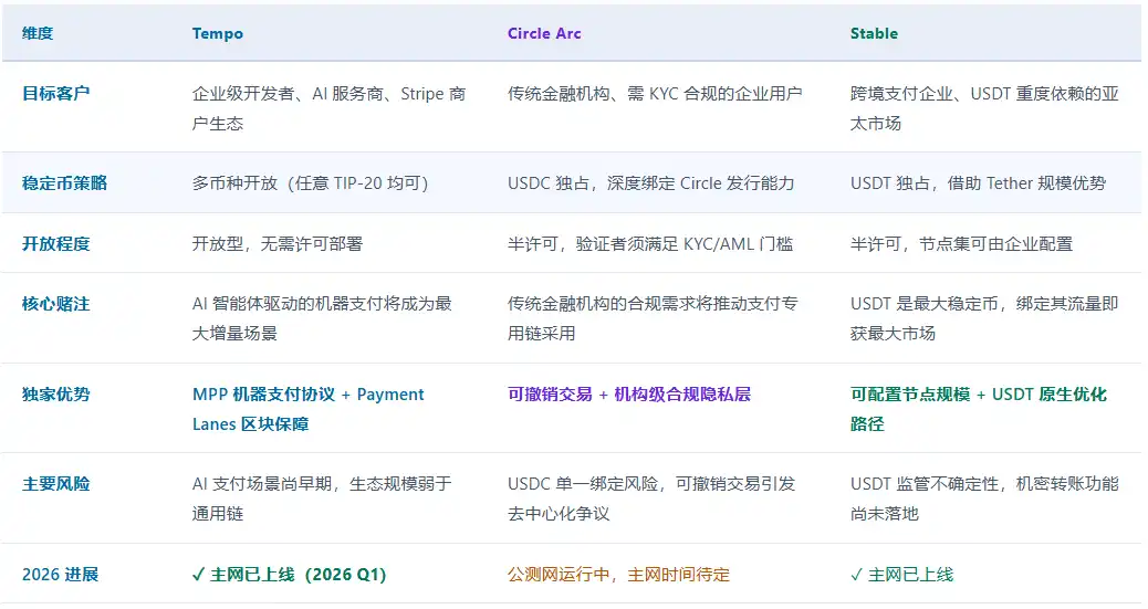6.1 Chaînes dédiées aux paiements : Tempo vs Circle Arc vs Stable