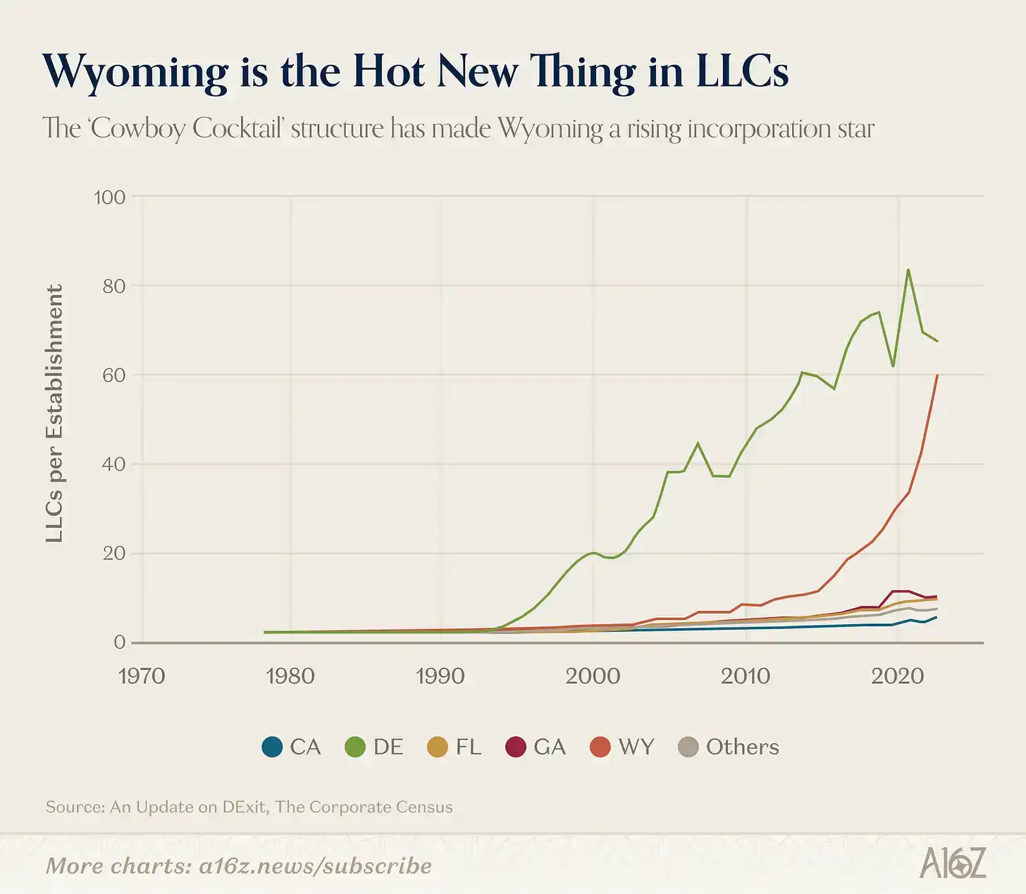 Pourquoi ? Cela est probablement lié à des clauses spécifiques de protection des actifs et de confidentialité dans la loi sur les LLC du Wyoming, que l'État lui-même présente comme un « cocktail de cowboy ».