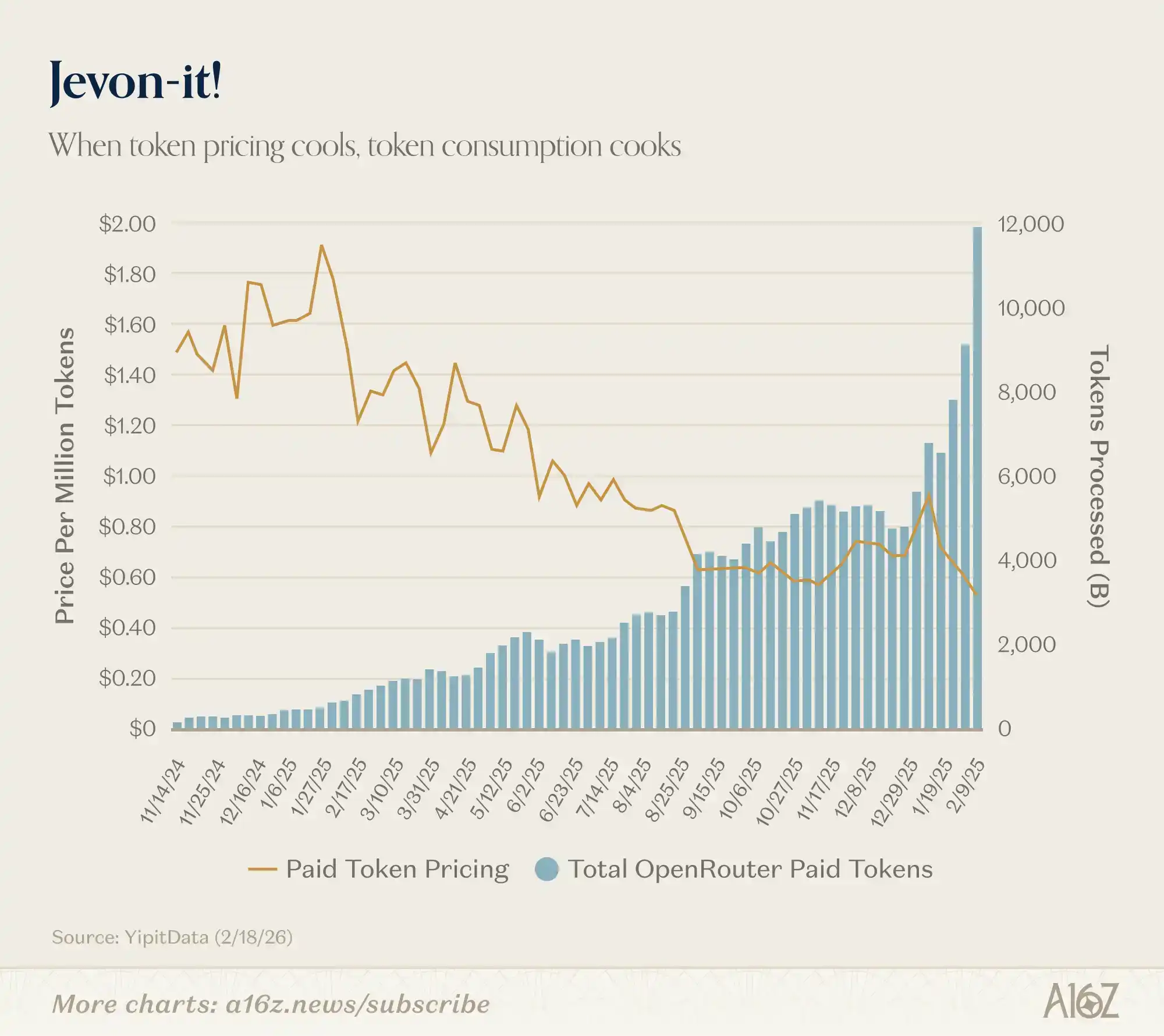 Le coût des Tokens baisse, la consommation de Tokens augmente :