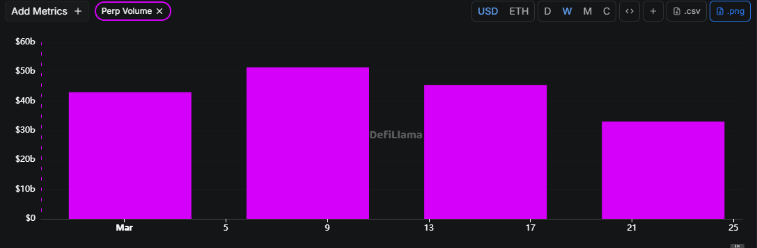 Dans ce contexte, Hyperliquid [HYPE] commence à se distinguer comme un bénéficiaire clé. Selon les données de DeFiLlama, il mène désormais le volume des DEX de perp, avec un volume hebdomadaire avoisinant les 48 milliards de dollars, soit environ 2 fois plus que la plateforme suivante.
