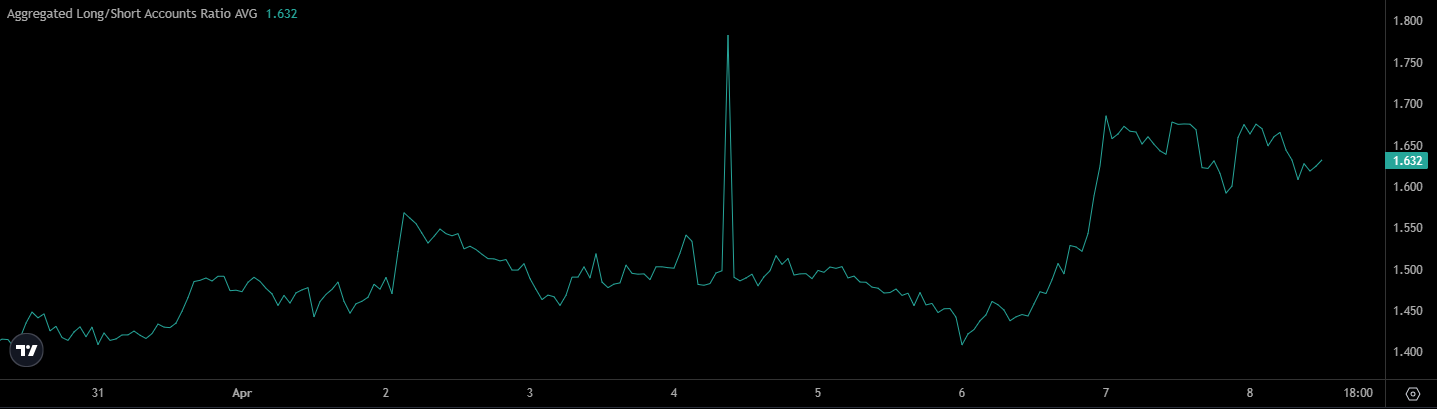 En plus de cela, les données sur les produits dérivés ont confirmé un positionnement haussier. Le ratio long/court était de 1,6 au moment de la rédaction, montrant que les positions longues l'emportaient sur les positions courtes.