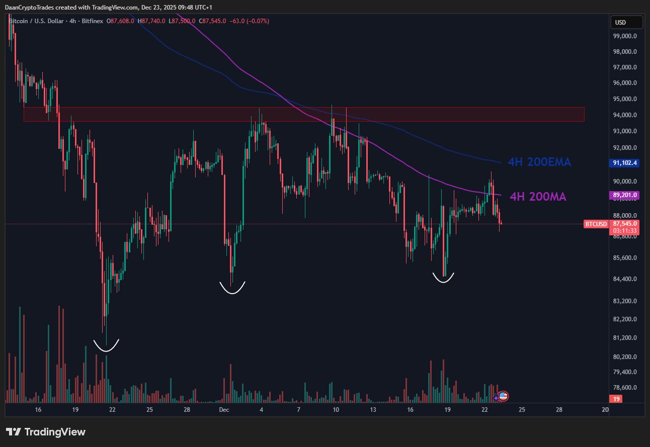 « $BTC continue d'être rejeté par sa tendance 200MA/EMA sur 4H », a observé le trader Daan Crypto Trades dans sa dernière analyse sur X.