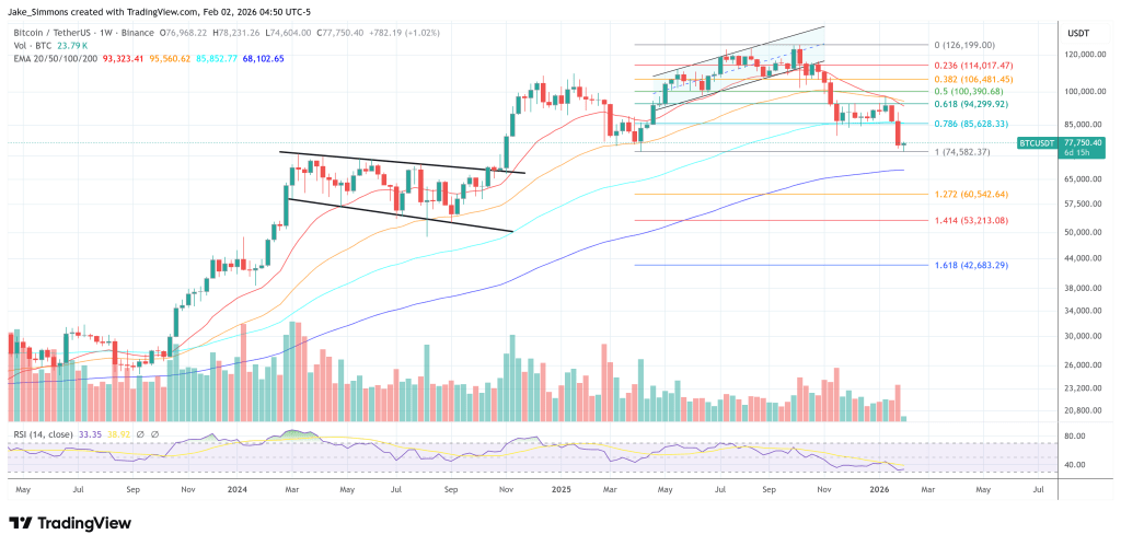 Au moment de la rédaction, le BTC s'échangeait à 77 750 $.