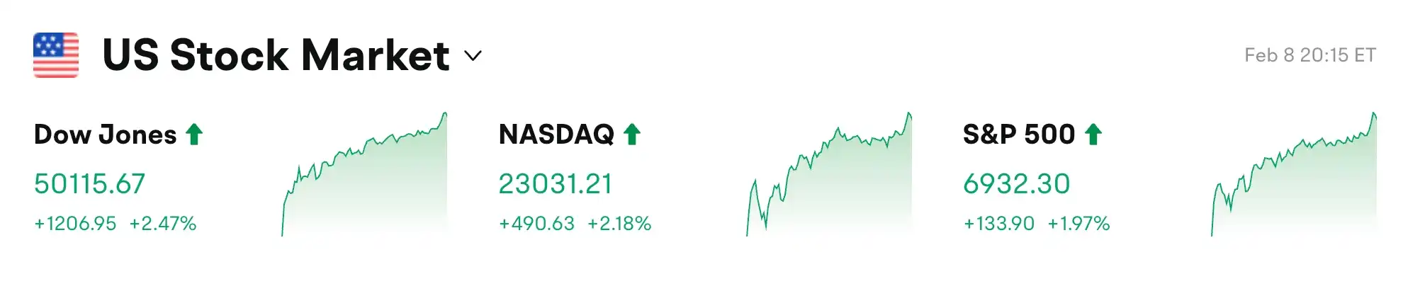 - Dow Jones : +2,47% + franchit pour la première fois les 50000 points, rebond continu