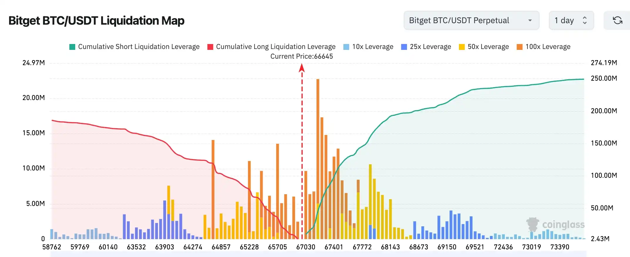 - Carte des liquidations Bitget BTC/USDT : Prix actuel ~66645, une zone dense de liquidations short existe dans l'intervalle 66500–67000 en dessous, tandis qu'un grand nombre de positions longues très杠杆isées se concentrent au-dessus dans 67500–68200, une percée pourrait déclencher des liquidations en chaîne. La structure globale montre un support plus fort que la pression haussière, plus susceptible de se consolider d'abord pour digérer l'effet de levier avant de choisir une direction, observation clé : si 67000 peut être reconquis ou si 68000 est franchi fermement.