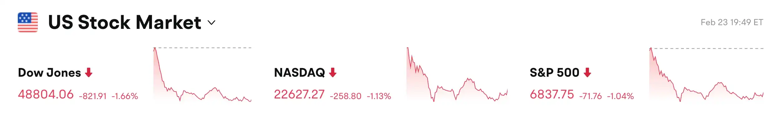 Cause principale : Ravivement des risques tarifaires combiné au rapport Citrini « Crise intelligente 2028 » et à l'outil COBOL d'Anthropic, déclenchant des ventes paniquées dans les secteurs liés à l'IA.