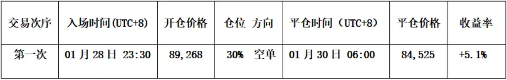 • Validation de l'exécution de la stratégie (court terme) : Les transactions de la semaine dernière ont strictement suivi la stratégie établie, réalisant une opération à court terme (effet de levier 1x), avec un rendement réussi de 5,1 %.
