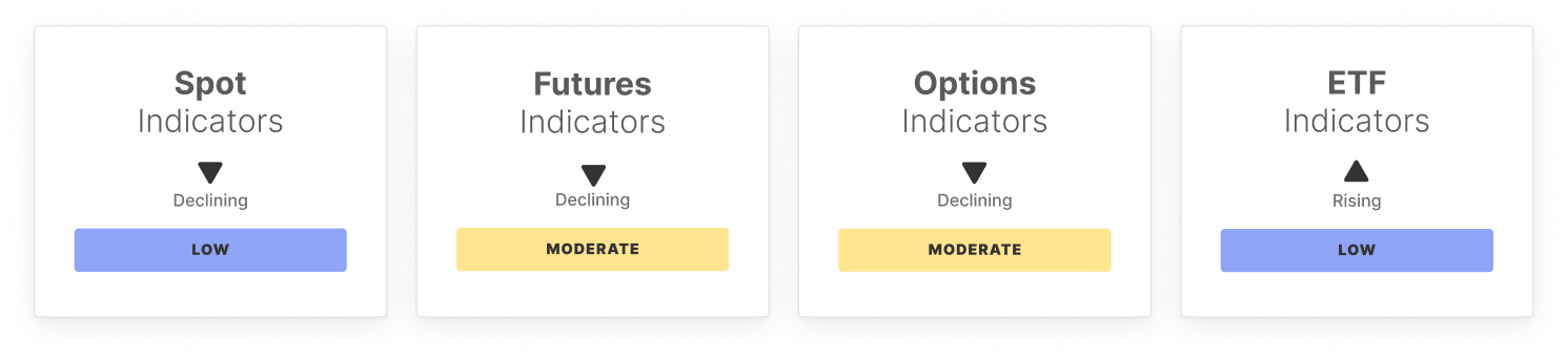 à travers les indicateurs au comptant, des dérivés, des ETF et on-chain. Avec le