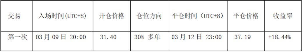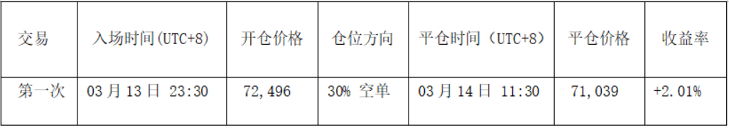 • Vérification de l'efficacité de l'exécution de la stratégie BTC (court terme) : Le Bitcoin a suivi la stratégie courte établie la semaine dernière, a réalisé une opération courte (levier x1), avec un gain d'environ 2,01%. (Voir le tableau 2)