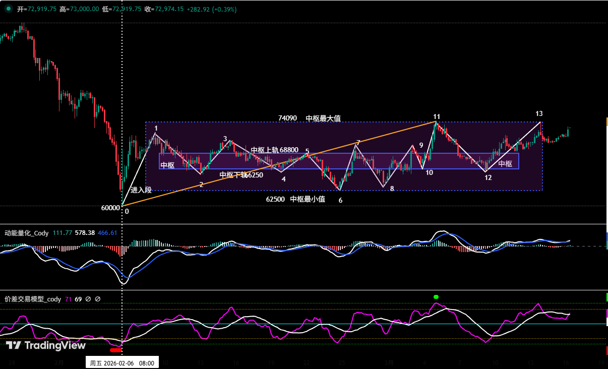 1. Construction du中枢 haussier du Bitcoin (basé sur l'évolution après le plus bas du 6 février) : (Mise à jour hebdomadaire)