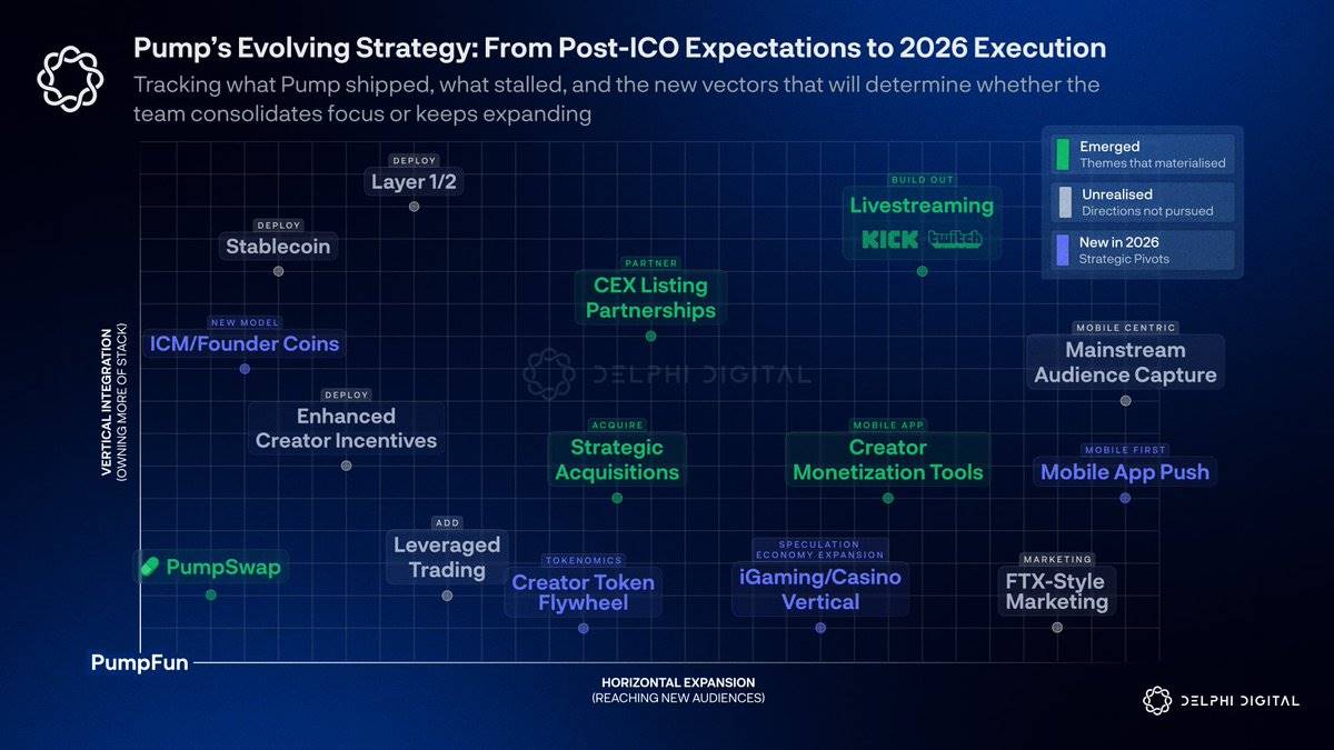 En regardant vers 2026, les principales questions pour Pump se concentrent sur : sa capacité à finalement établir un modèle de jeton de créateur à incitations compatibles, la possibilité d'une expansion substantielle du marché multi-chaînes via Padre, la gestion des risques liés au déblocage des jetons et à la baisse de visibilité des revenus, et le choix du domaine vertical produit sur lequel se concentrer principalement. Actuellement, la stratégie de Pump semble dispersée entre plusieurs directions, incluant le streaming, l'ICM et le mobile.