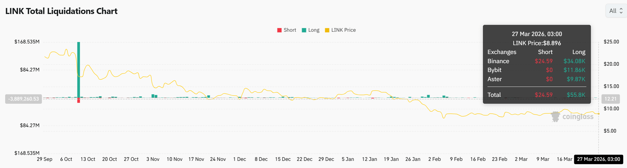 Les liquidations longues de Chainlink dominent alors que la tendance baissière persiste