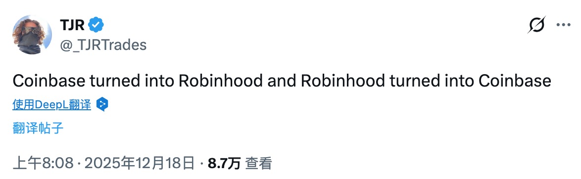 Bien sûr, ce virage stratégique a également suscité des évaluations sous différents angles de la part de l'industrie. Les tenants de l'idéal décentralisé expriment des doutes, estimant que cela s'écarte de l'essence même de la Crypto. Certains observateurs du marché, sous l'angle de l'évolution du secteur, soulignent que les frontières des services fintech deviennent de plus en plus floues – « Coinbase devient Robinhood, et Robinhood devient aussi plus comme Coinbase ».