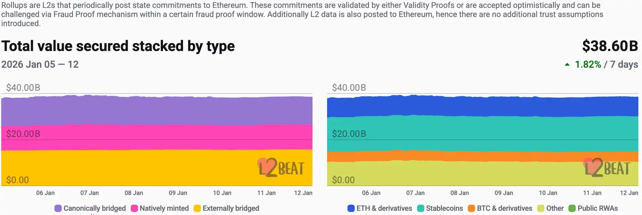 Selon les données de L2Beat, le TVL total de Layer 2 d'Ethereum est de 386,0 milliards de dollars, en hausse de 1,82 % cette semaine par rapport à la semaine dernière (379,1 milliards de dollars).