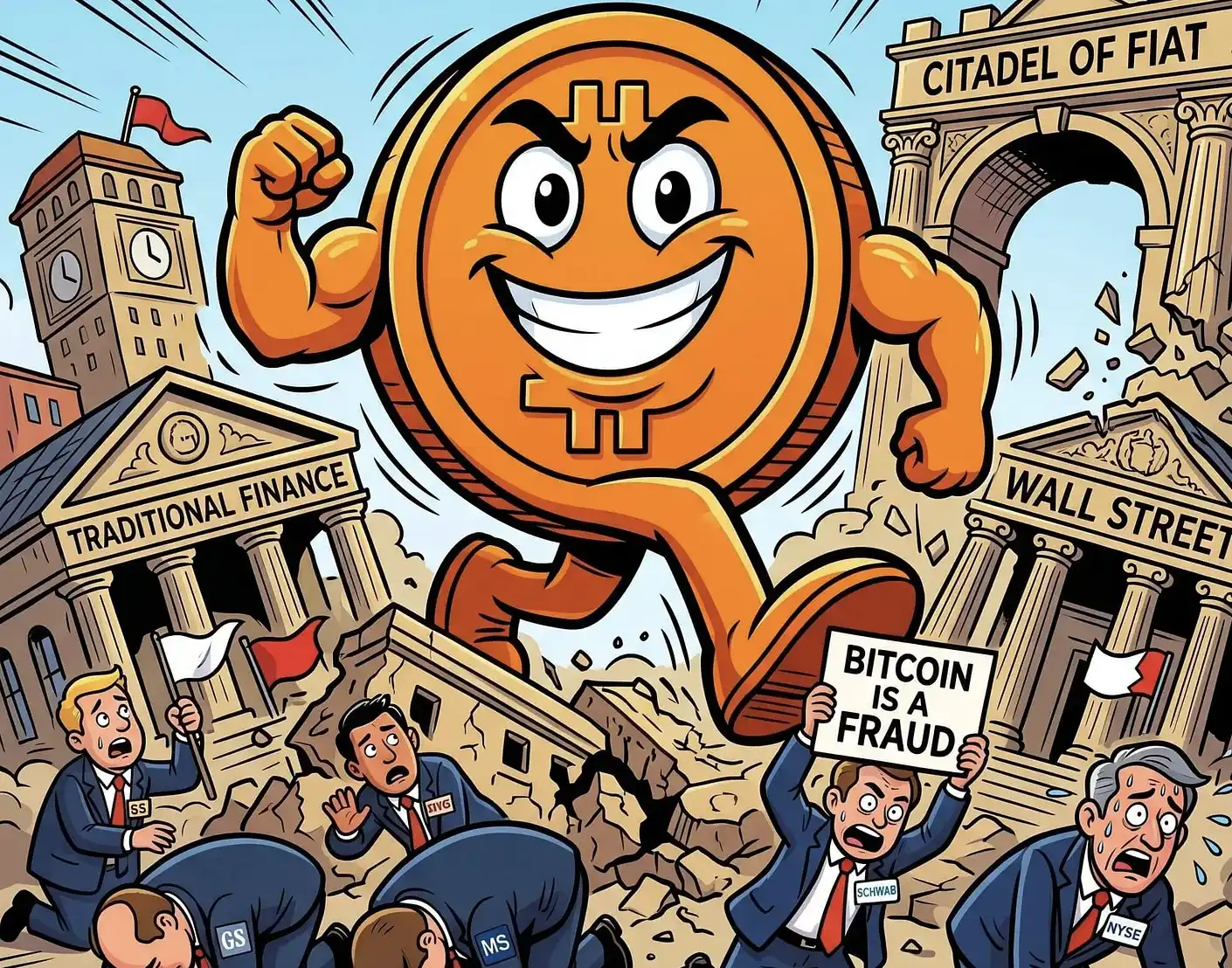 Au début, Wall Street n'en avait rien à faire. Bitcoin n'était qu'un jouet pour cypherpunks et libertariens. Quand il a commencé à percer, les moqueries ont commencé, rabaissé au rang de monnaie de Monopoly. Un réseau décentralisé, sans leader, avec un plafond fixe de 21 millions d'unités, prétendant défier la monnaie souveraine du dollar ? C'était une blague suprême lors des cocktails de Davos et de Wall Street.