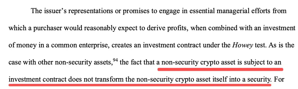 C'est l'interprétation la plus innovante de ce document : les actifs non titres (comme les marchandises numériques) peuvent être vendus dans le cadre d'un contrat d'investissement, mais l'actif lui-même ne devient pas pour autant un titre :