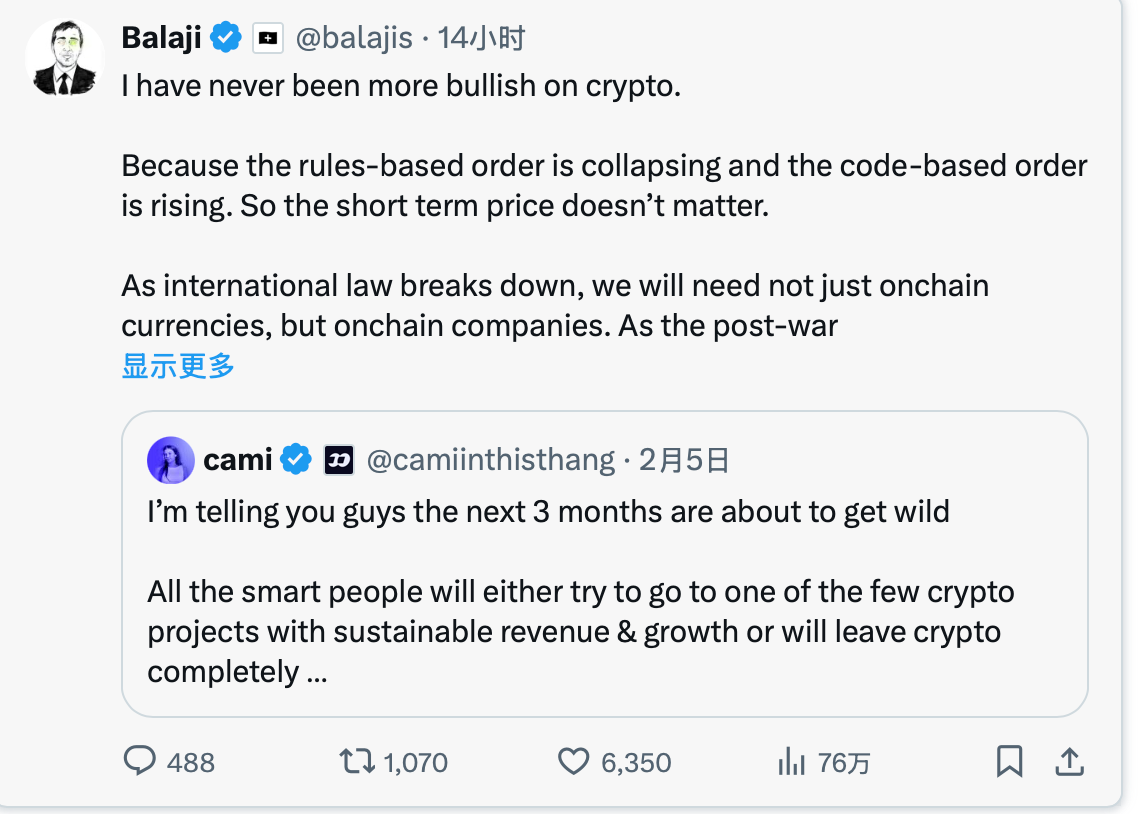 Alors que le système de droit international se désintègre, nous avons besoin non seulement de monnaie sur chaîne, mais aussi d'entreprises sur chaîne. Alors que l'ordre d'après-guerre se désagrège, nous avons également besoin d'un « ordre post-Internet ». Les nations échoueront, et les réseaux prendront leur place.