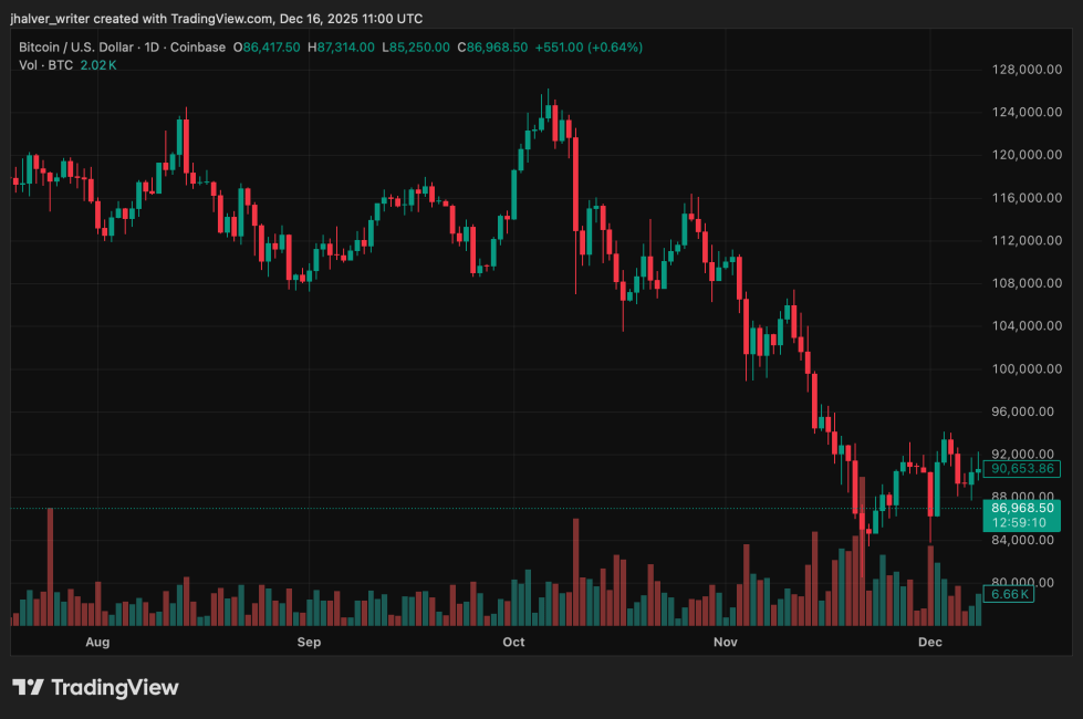 Le Bitcoin est tombé sous le niveau des 86 000 dollars, tandis que le marché plus large des actifs numériques a perdu environ 140 milliards de dollars de capitalisation en quelques heures. La valeur totale du marché est tombée à environ 2,93 billions de dollars, son niveau le plus bas depuis plusieurs semaines, alors que les traders réévaluent les calendriers réglementaires qui s'étendent désormais jusqu'au début de 2026.