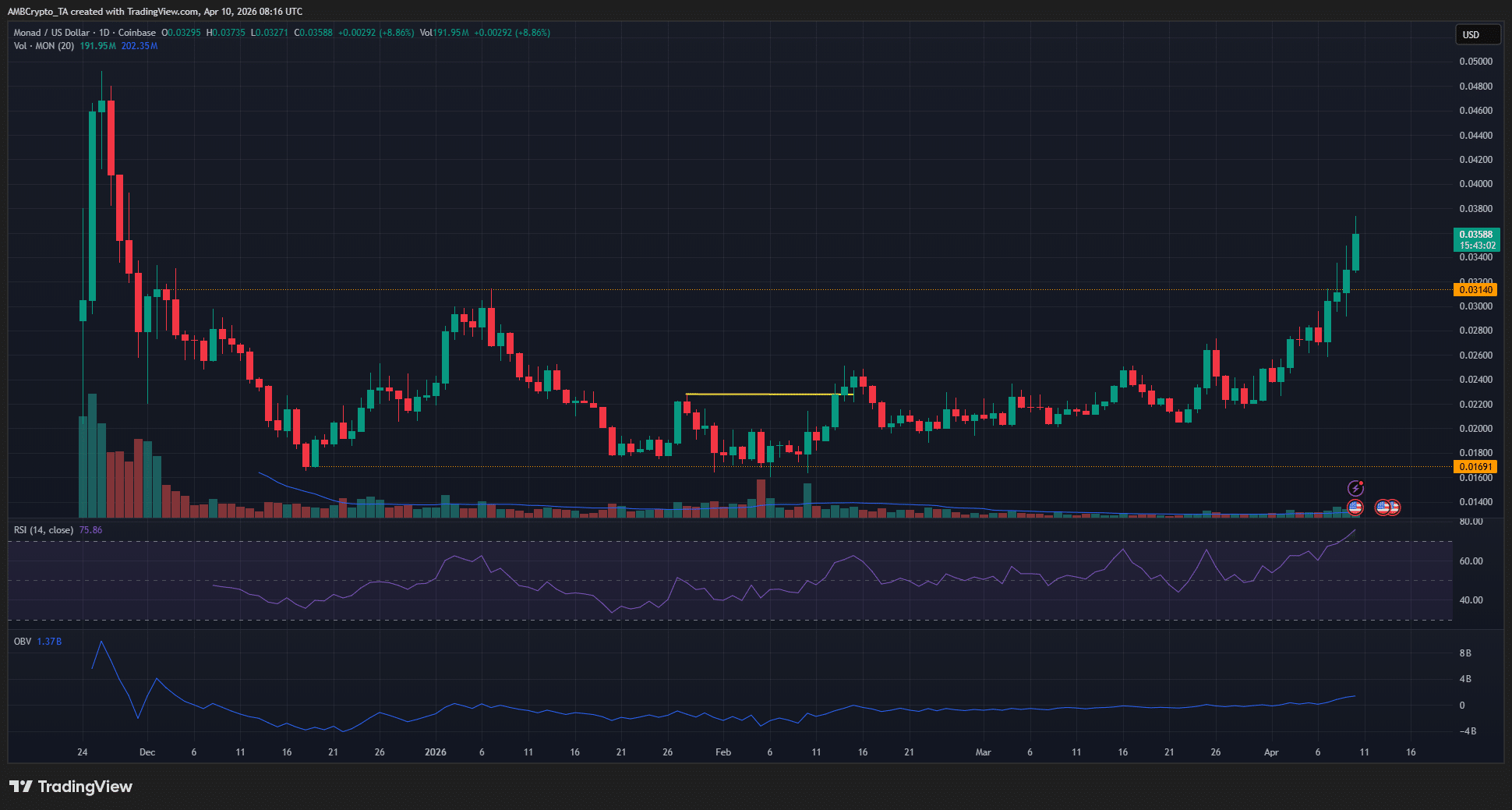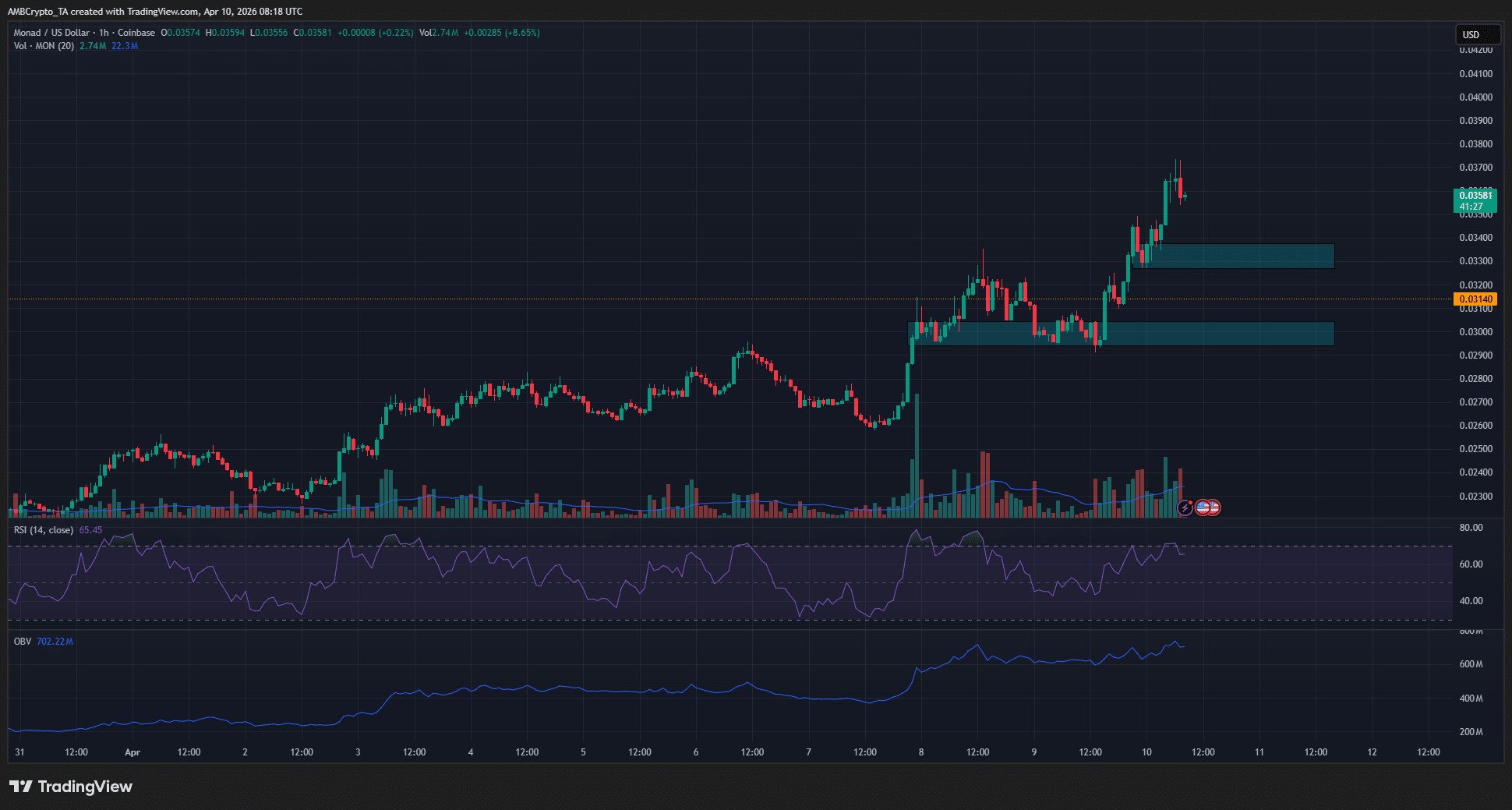 Monad [MON] a affiché une force haussière remarquable ces derniers jours, dépassant rapidement les niveaux de résistance locaux pour maintenir sa tendance haussière.