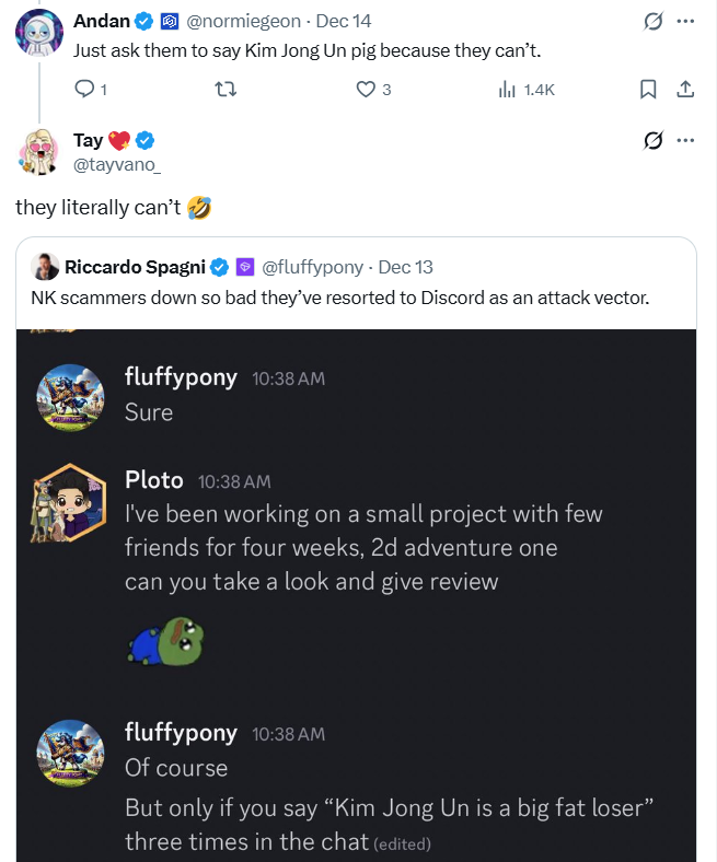 « Malheureusement, votre ordinateur est déjà compromis. Ils jouent simplement la carte de la discrétion pour éviter la détection. Ils finiront par prendre tout votre crypto. Et vos mots de passe. Et les données de votre entreprise/protocole. Et votre compte Telegram. Ensuite, vous allez vous faire avoir et cela affectera tous vos amis. »